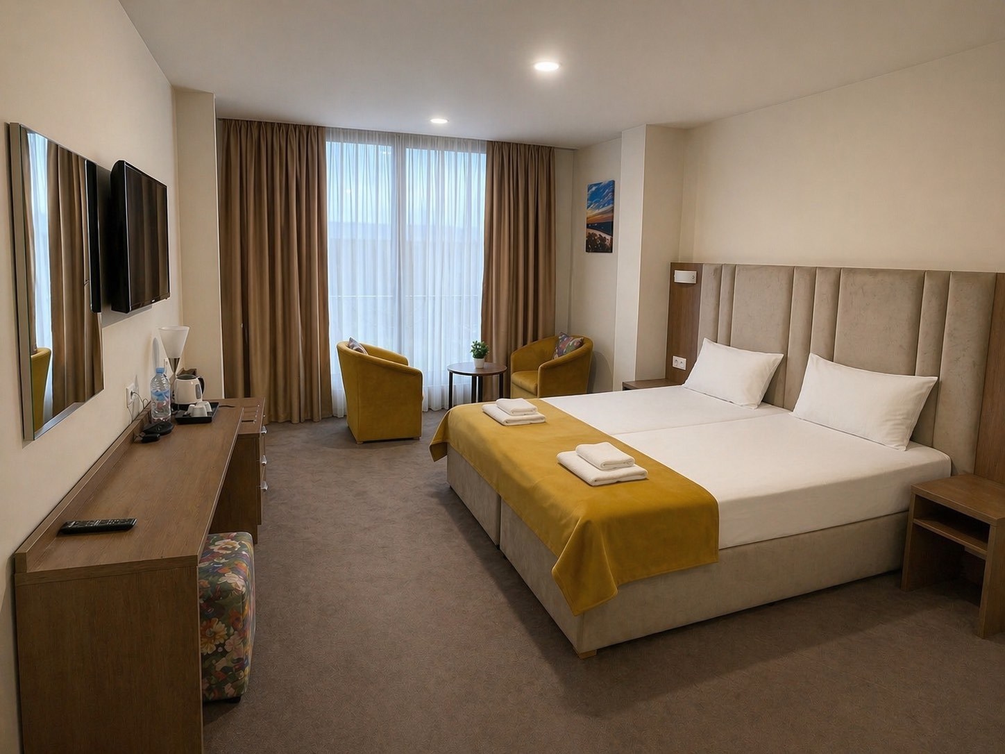 Хотелът е идеално разположен на крачка от Централен плаж Кранево, предоставяйки ви бърз достъп до брега и възможност да се любувате на прекрасни морски гледки.